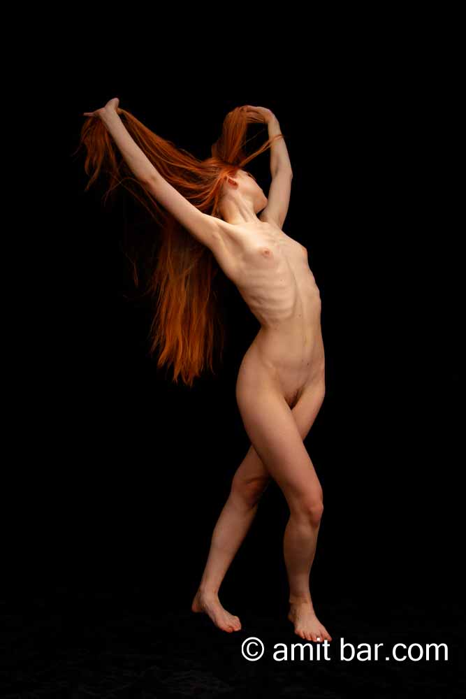 Photos I-III & video: Model Ameria is dancing in my studio and waving with her beautiful red hair