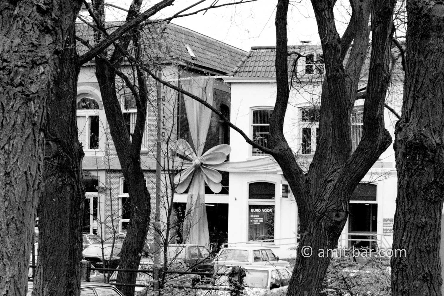 Anniversary ribbon on a printing shop in Doetinchem, The Netherlands