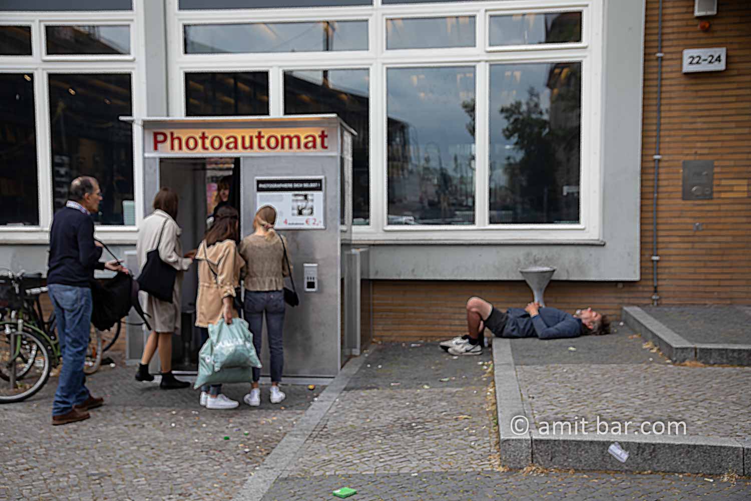 Photoautomat: A runner taking a rest for the benefit of the photo