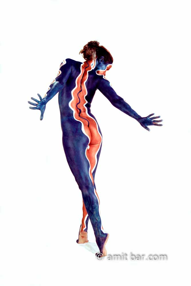 Photo 1,2: Body-painted model in bird form