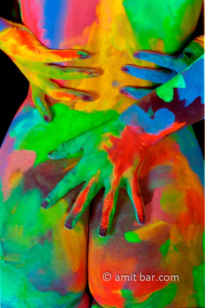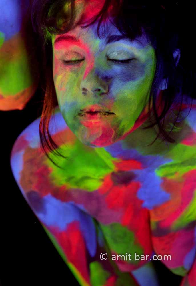 Colored patches IV: Portrait of body-painted models in my studio
