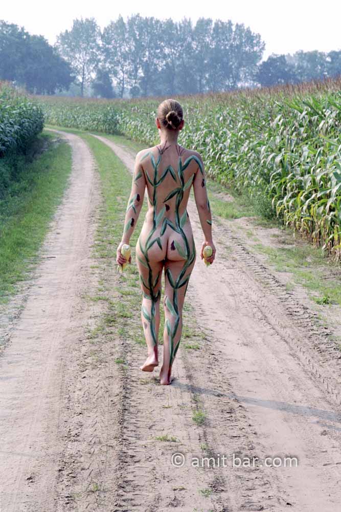 Body-painted model in corn-fields