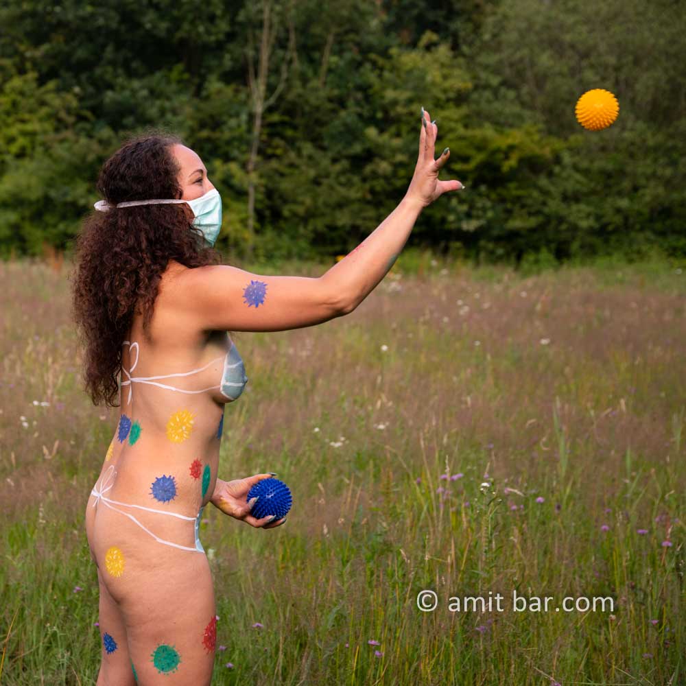 Corona II: Body-painted model as Corona virus victim-and fighter