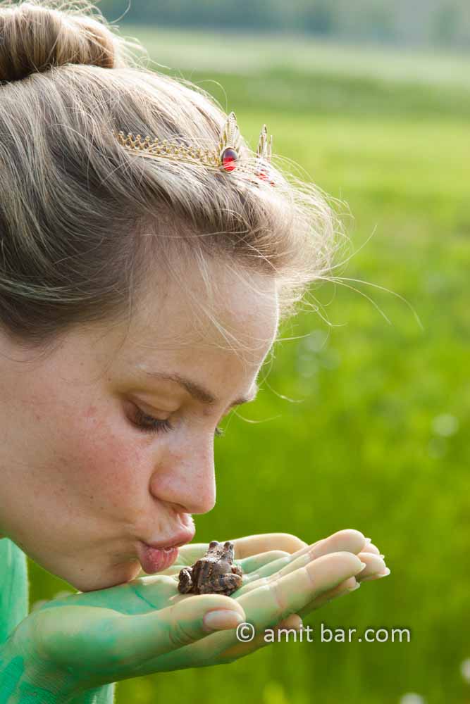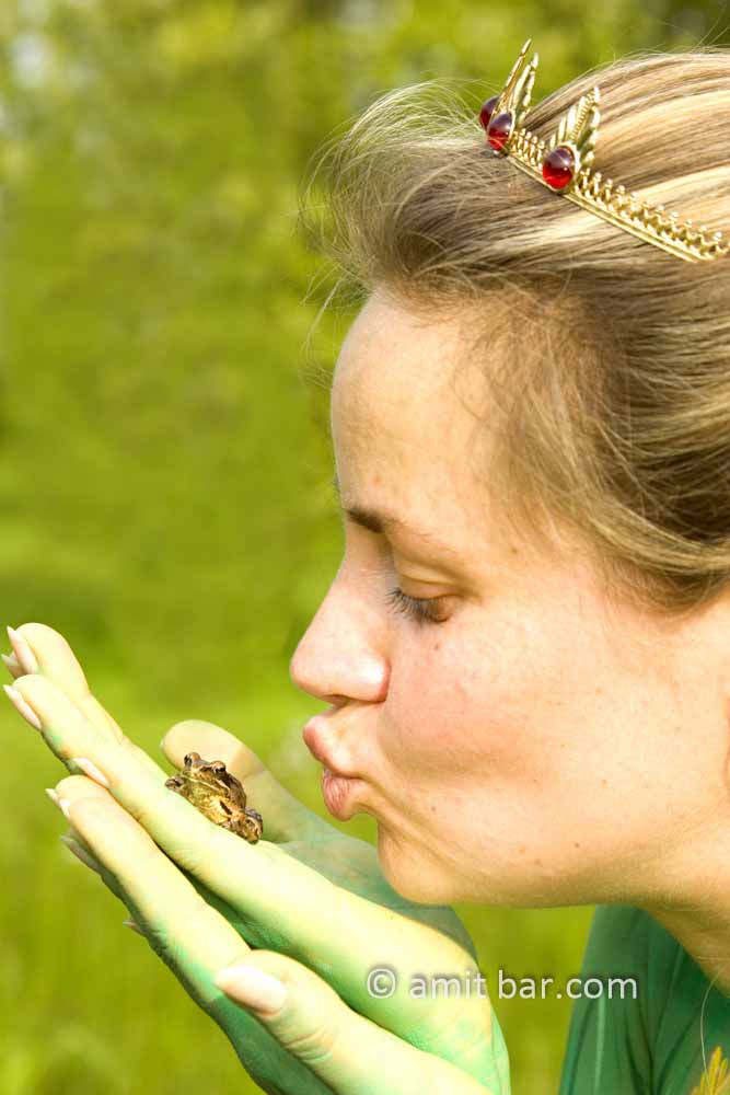 Photo 1: Model is kissing green frogs