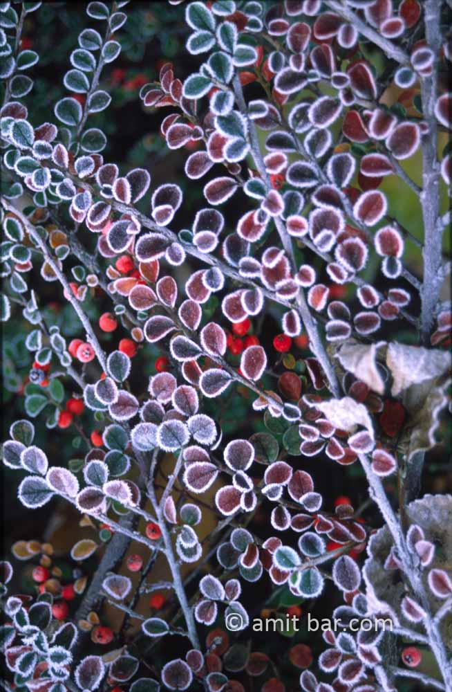 Frost decorates bush-leaves