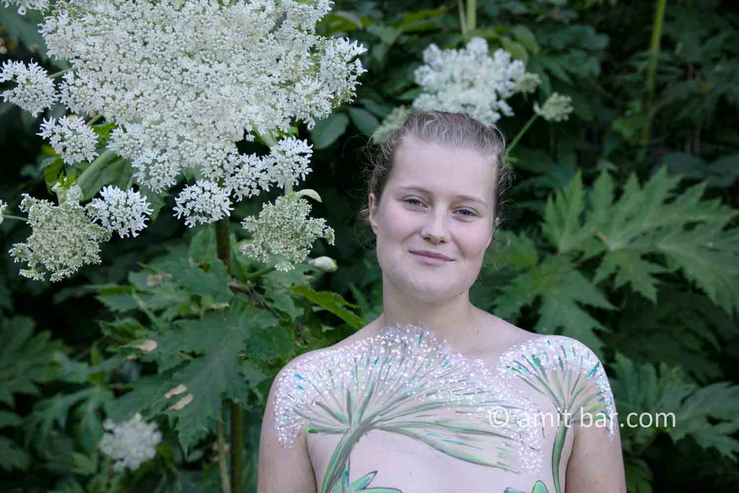 Portraits of Shelly, who is walking along the beautiful Giant Hogweed plant