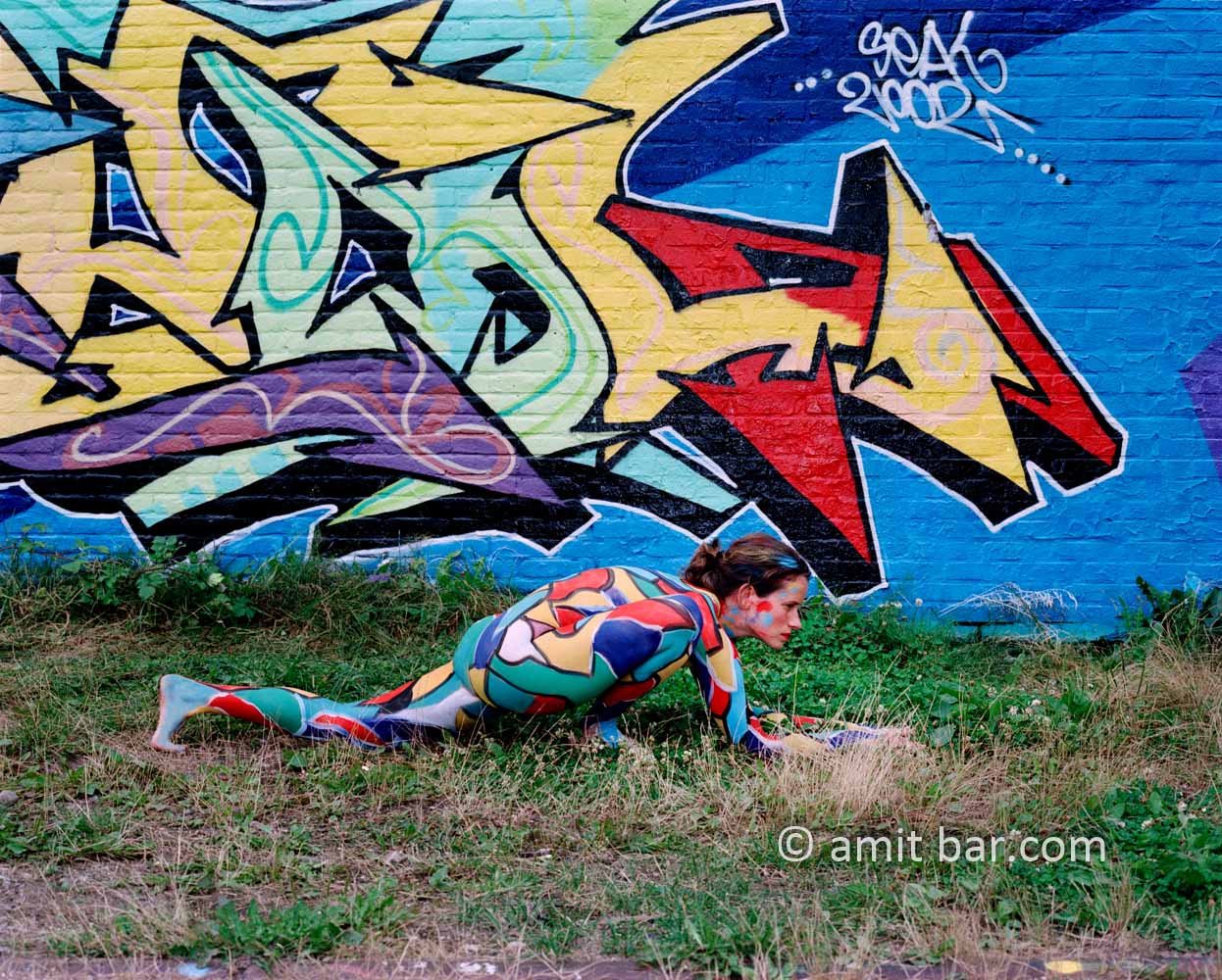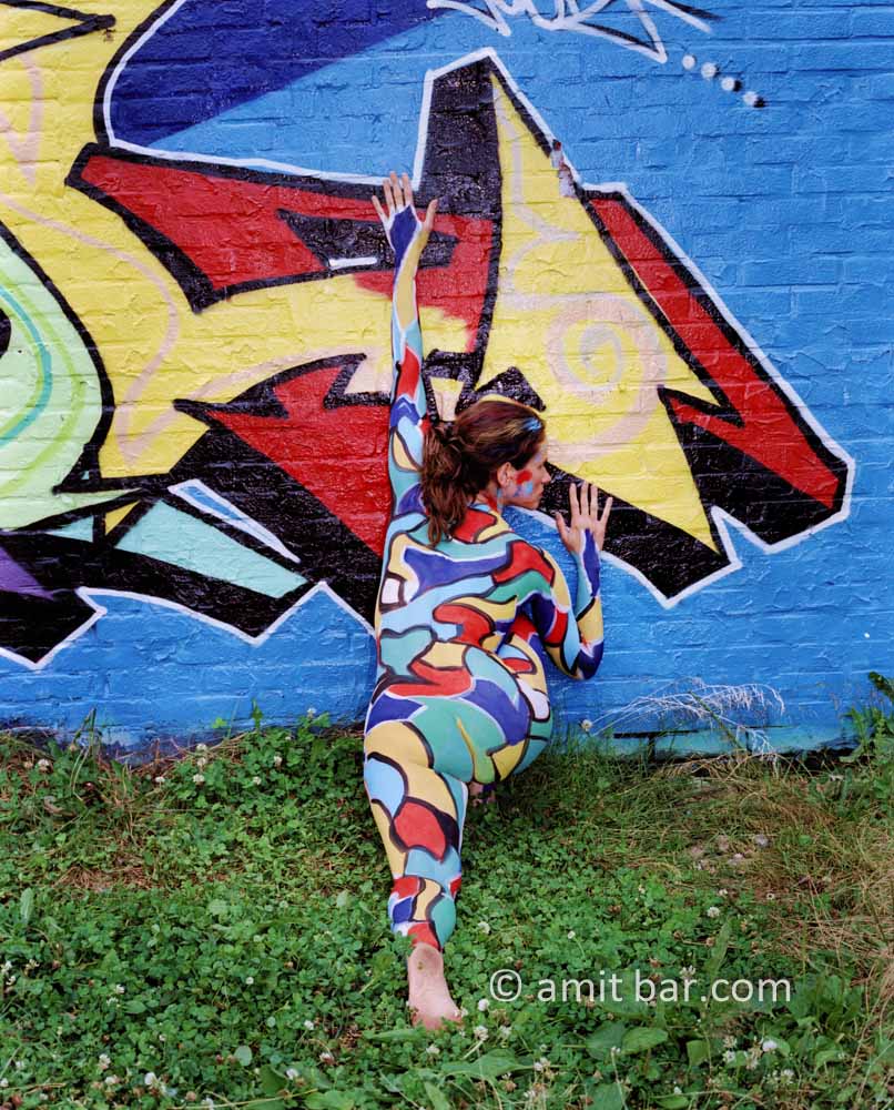 Body-painted model with graffity-wall