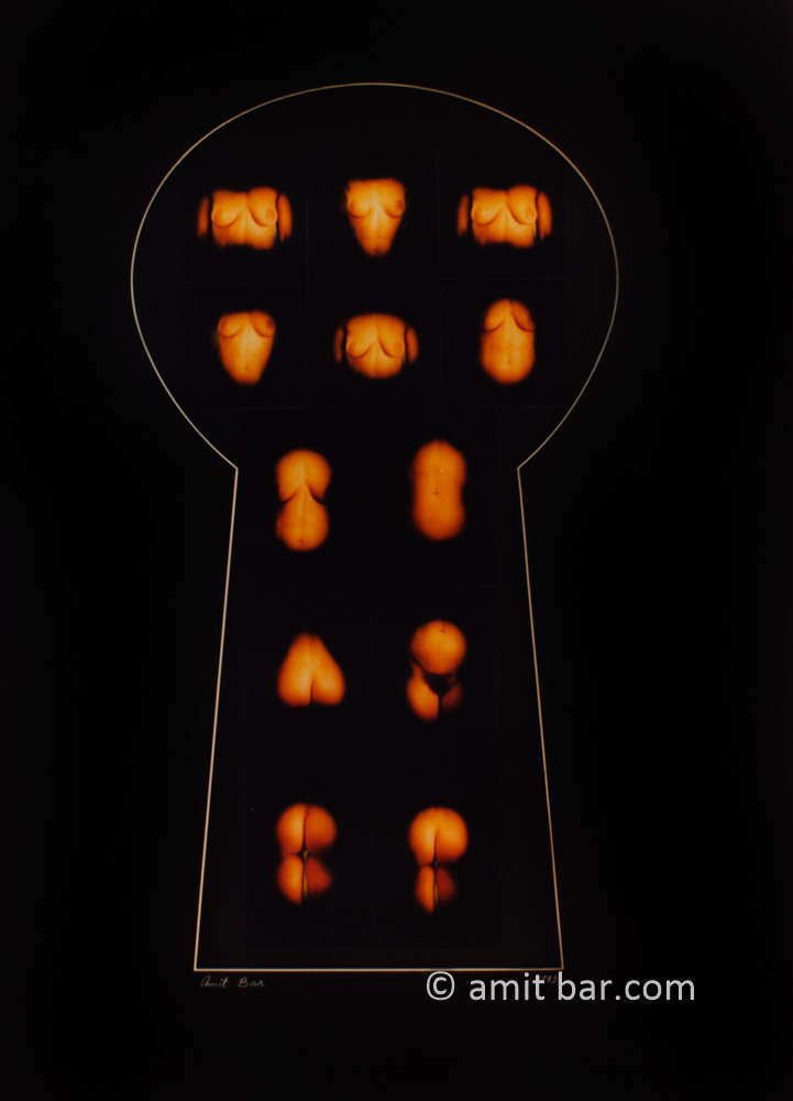 Photo-collage of a woman through a keyhole