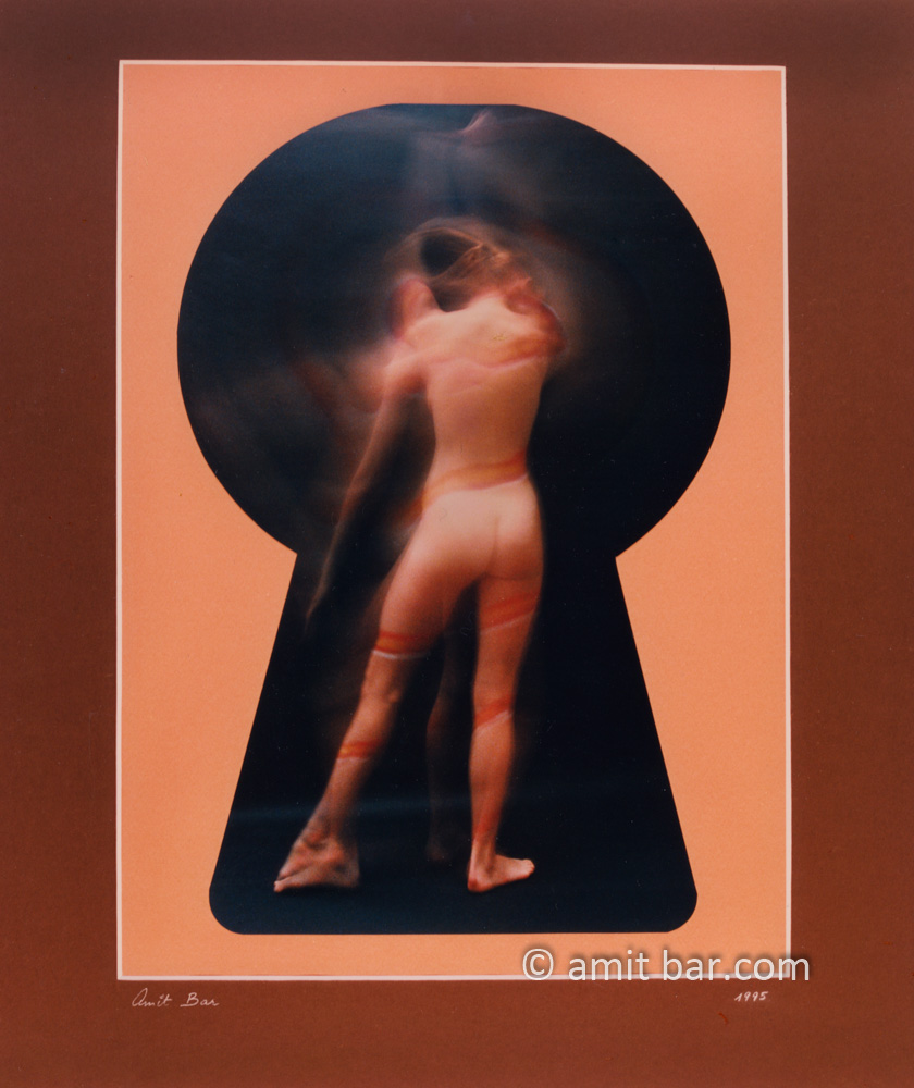 Collage of a nude figure in a keyhole
