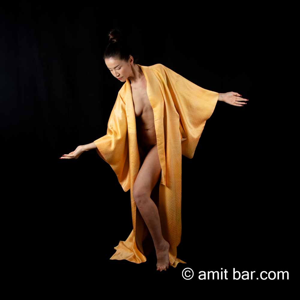 Model Natalie is dancing with her kimono in my studio