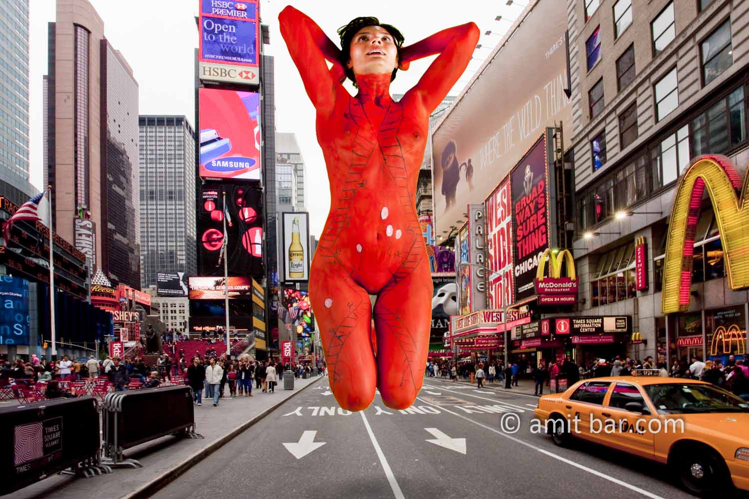 Photo 1-2: New York’s fire emergency stairs are the inspiration for this body-painting.