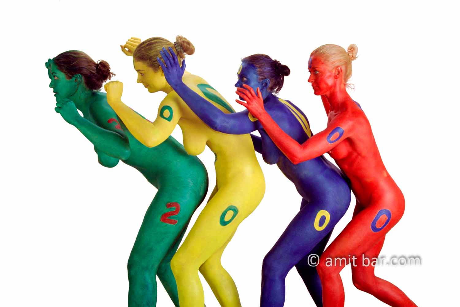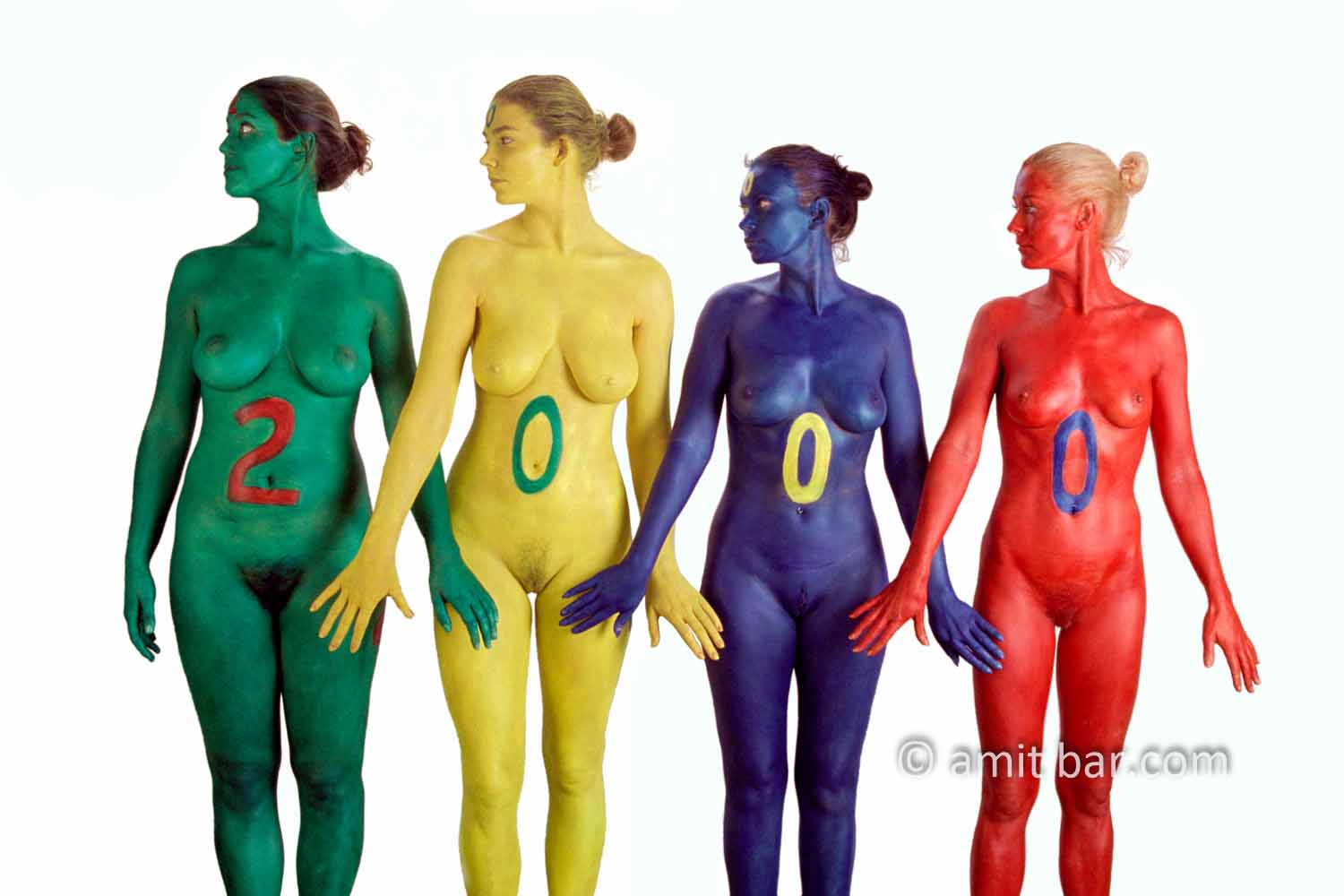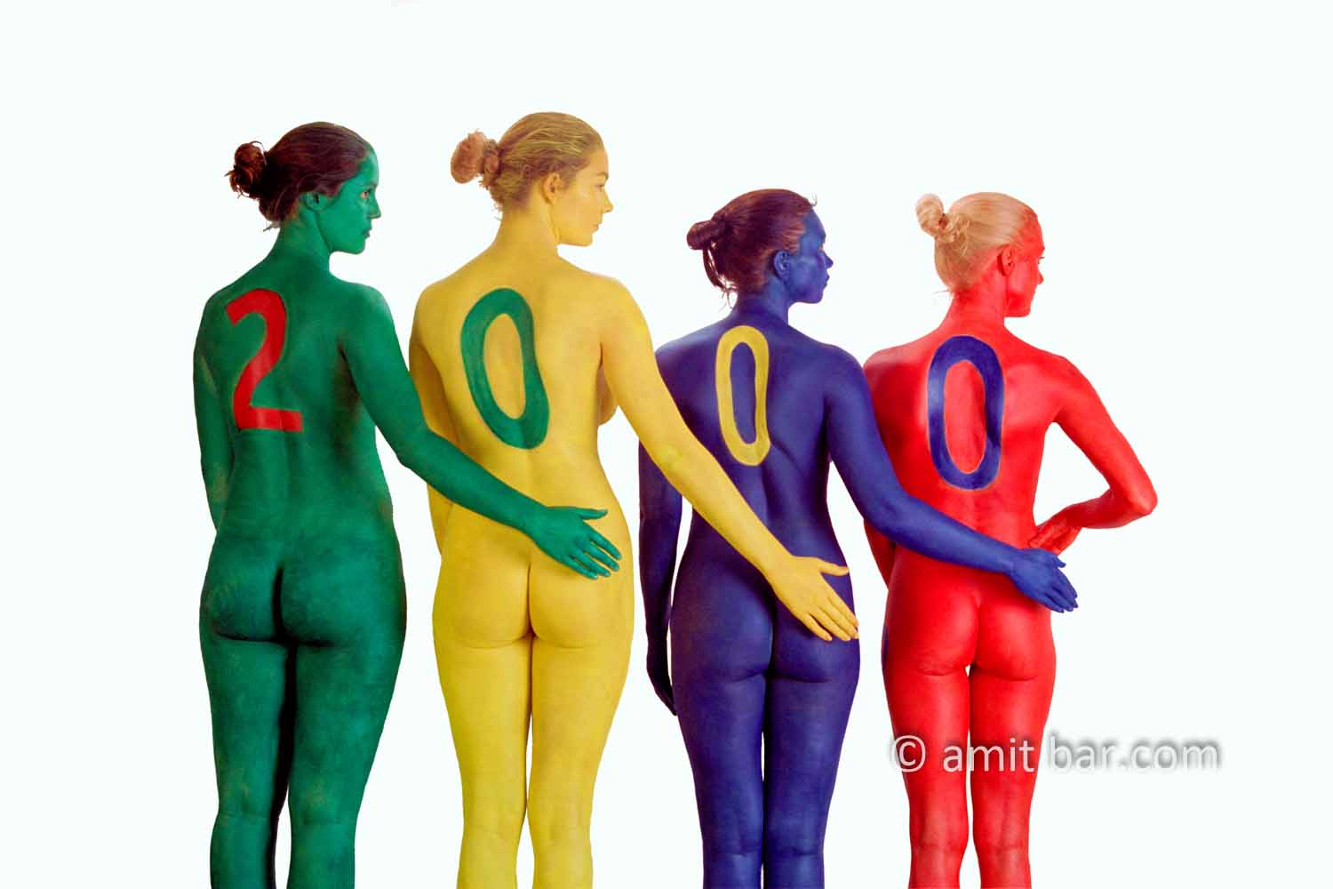 Photo 1-3: Four body painted girls are celebrating the mlilenium