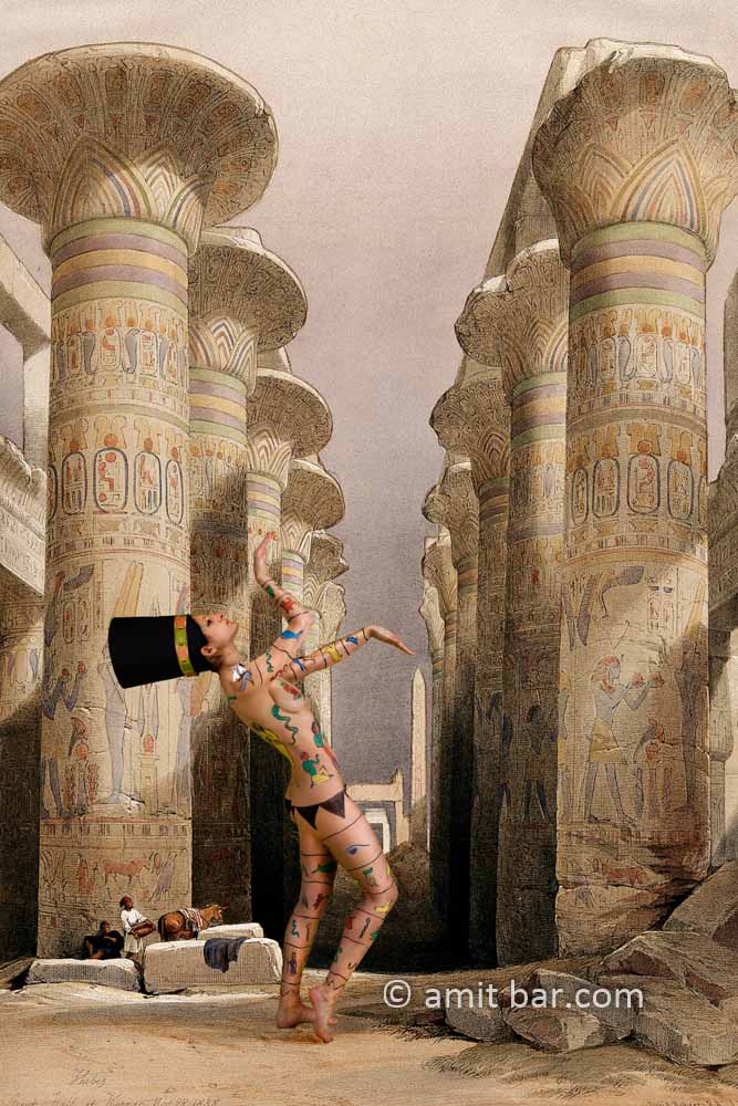 Photo I – II: Body-painted model as Nefertiti at the temple of Karnac, Thebes, Egypt