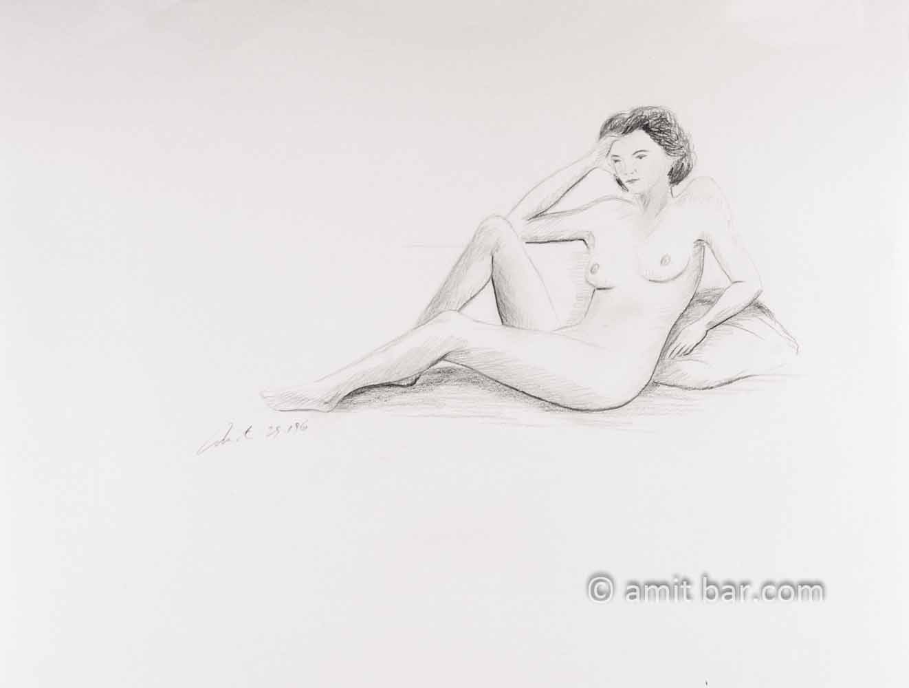 Nude figure leaning on her knee