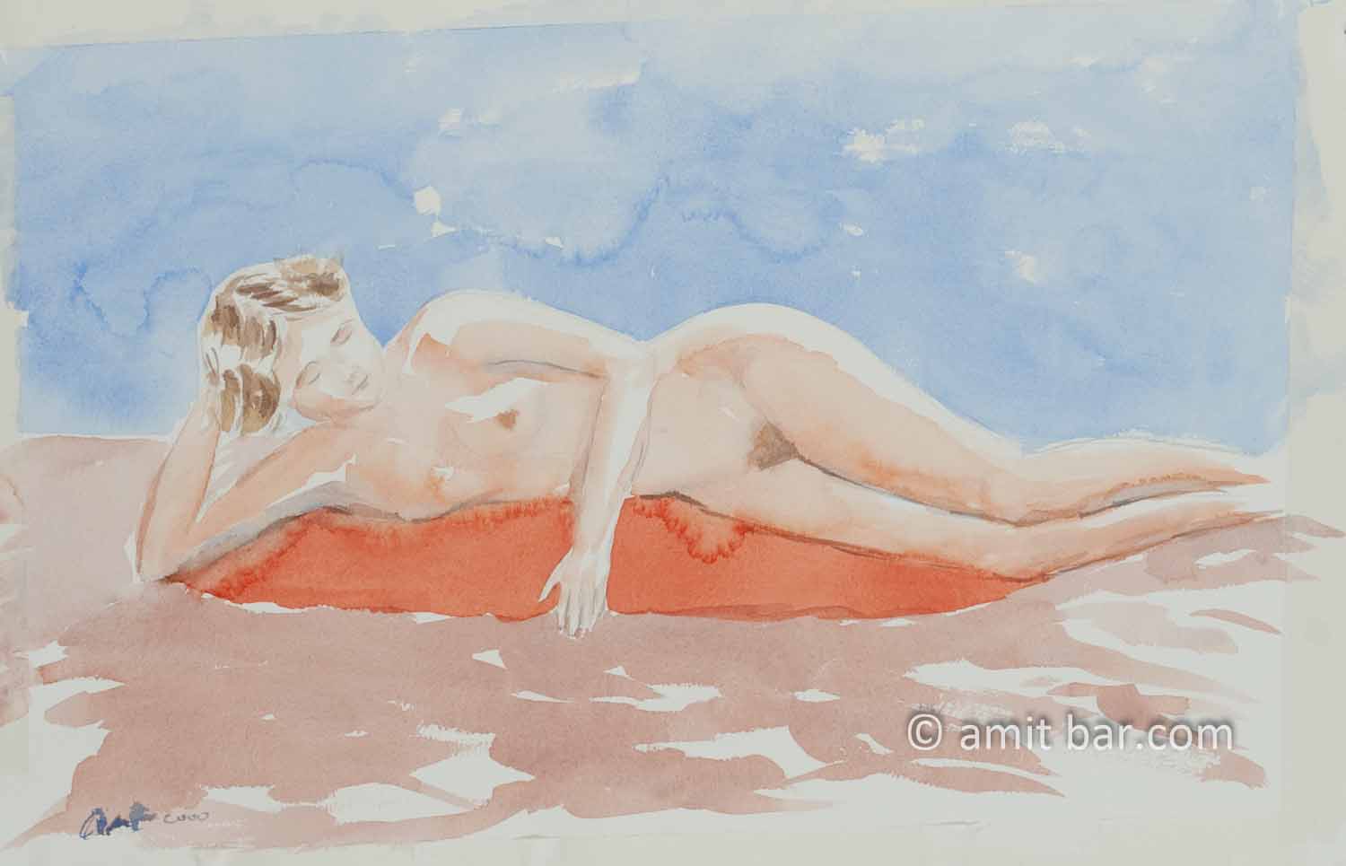 Nude in blue, brown and orange
