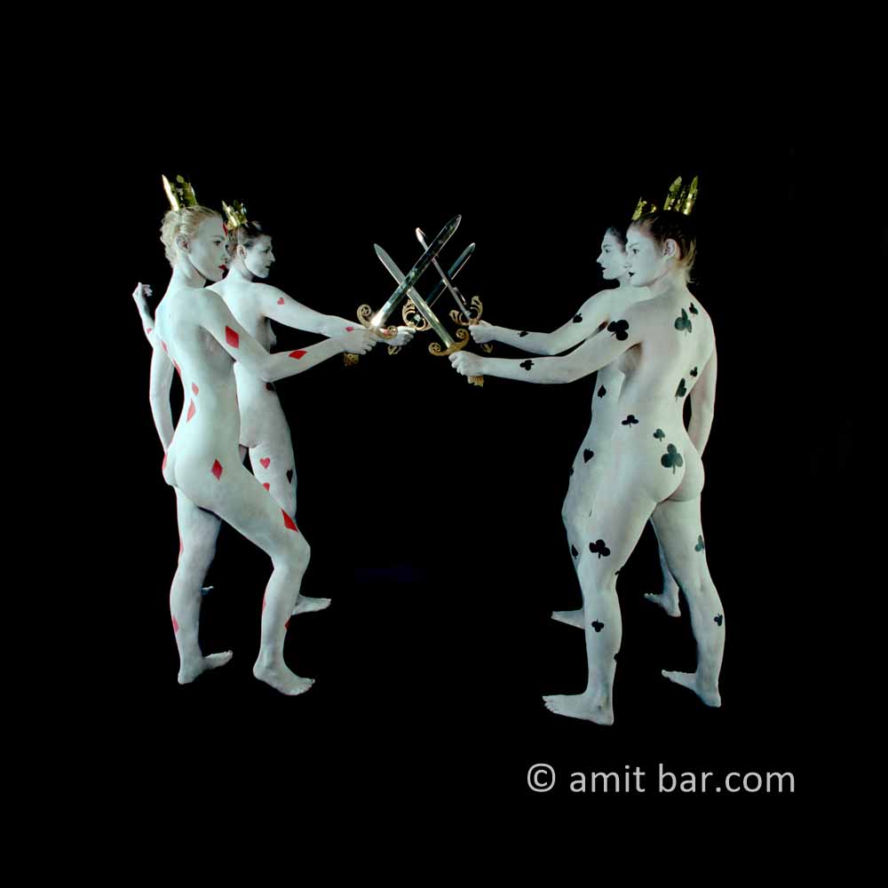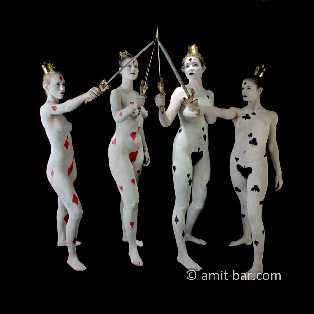 Photo 3-5: Body-painted models in card forms of clovers, diamonds, spades and hearts