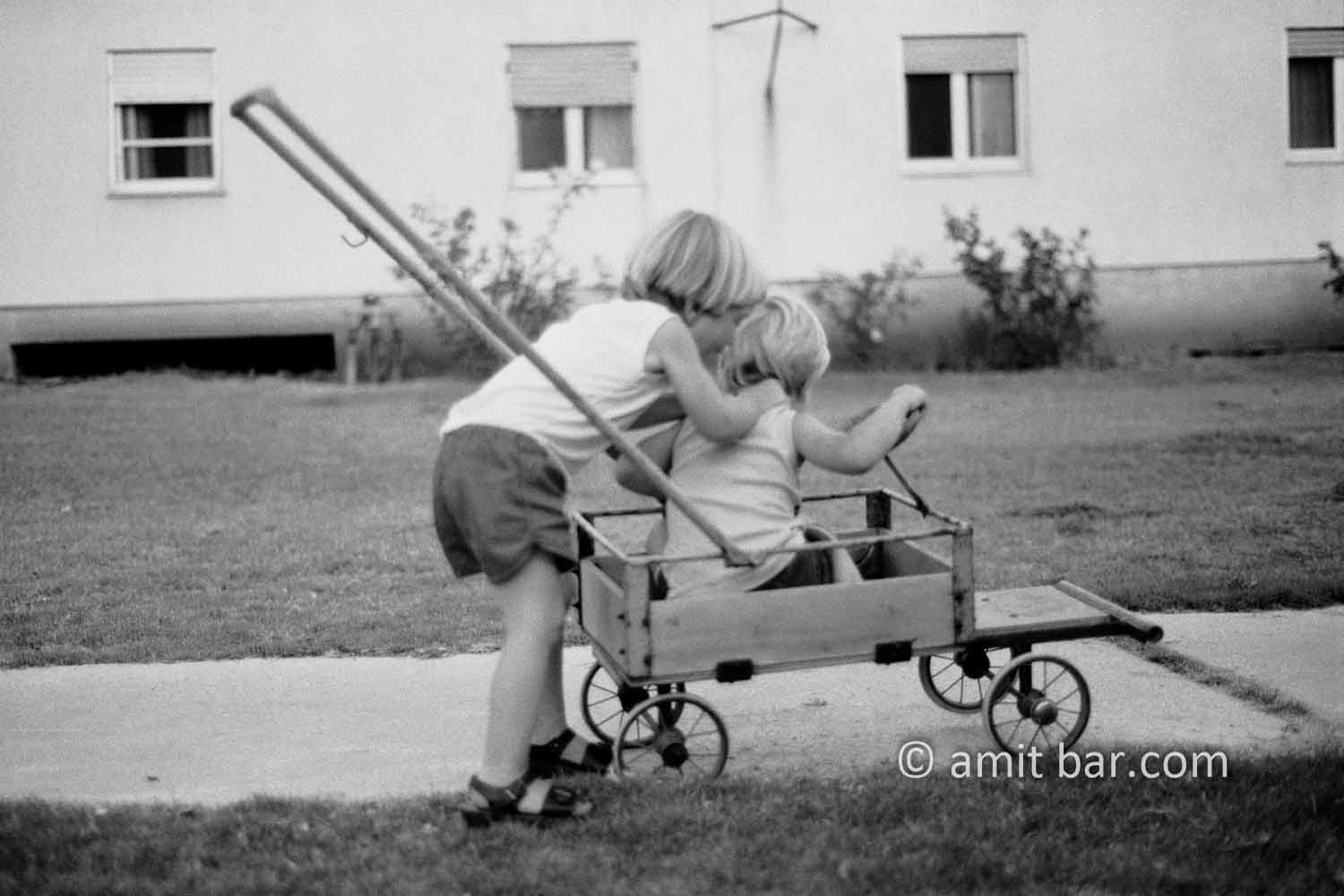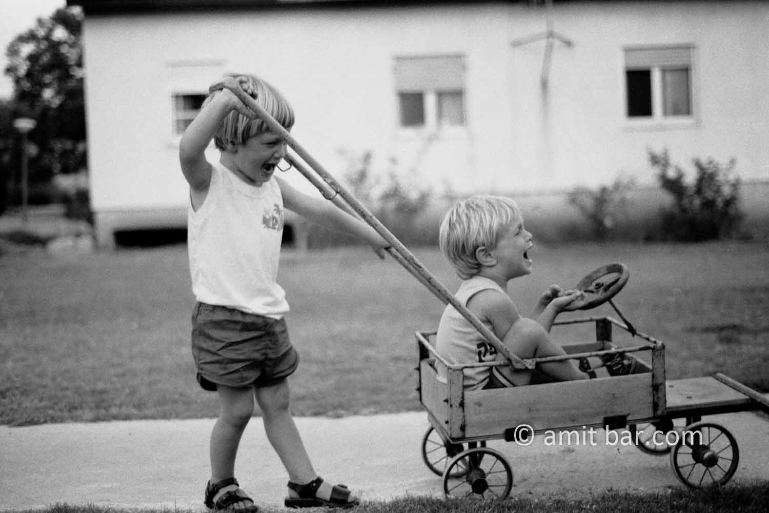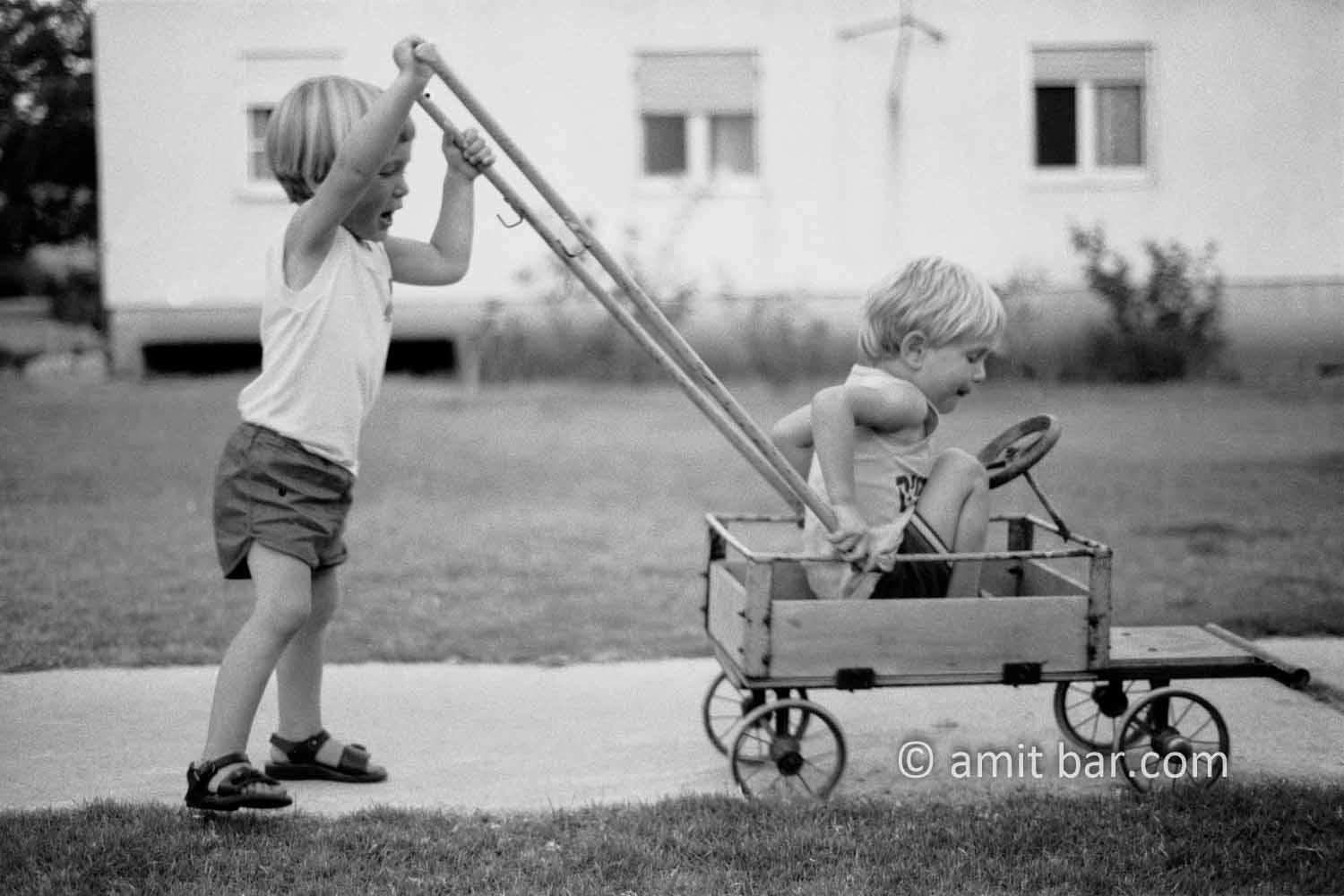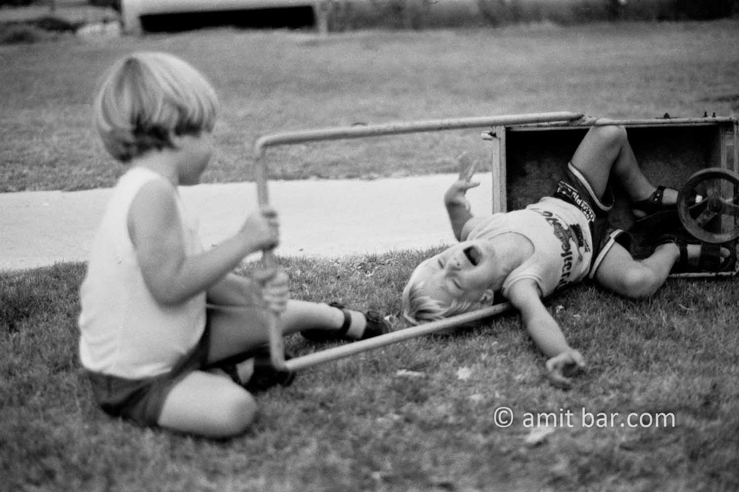 Twins quarreling over the use of a hand-wagonhoto 1-4: Twins quarreling over the use of a hand-wagon