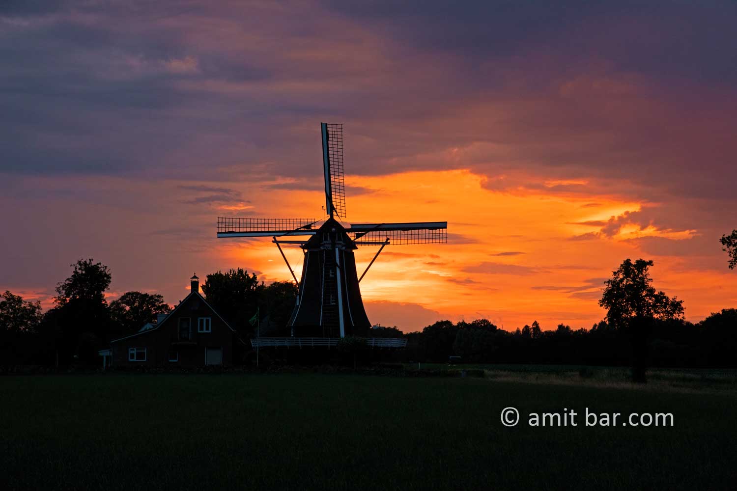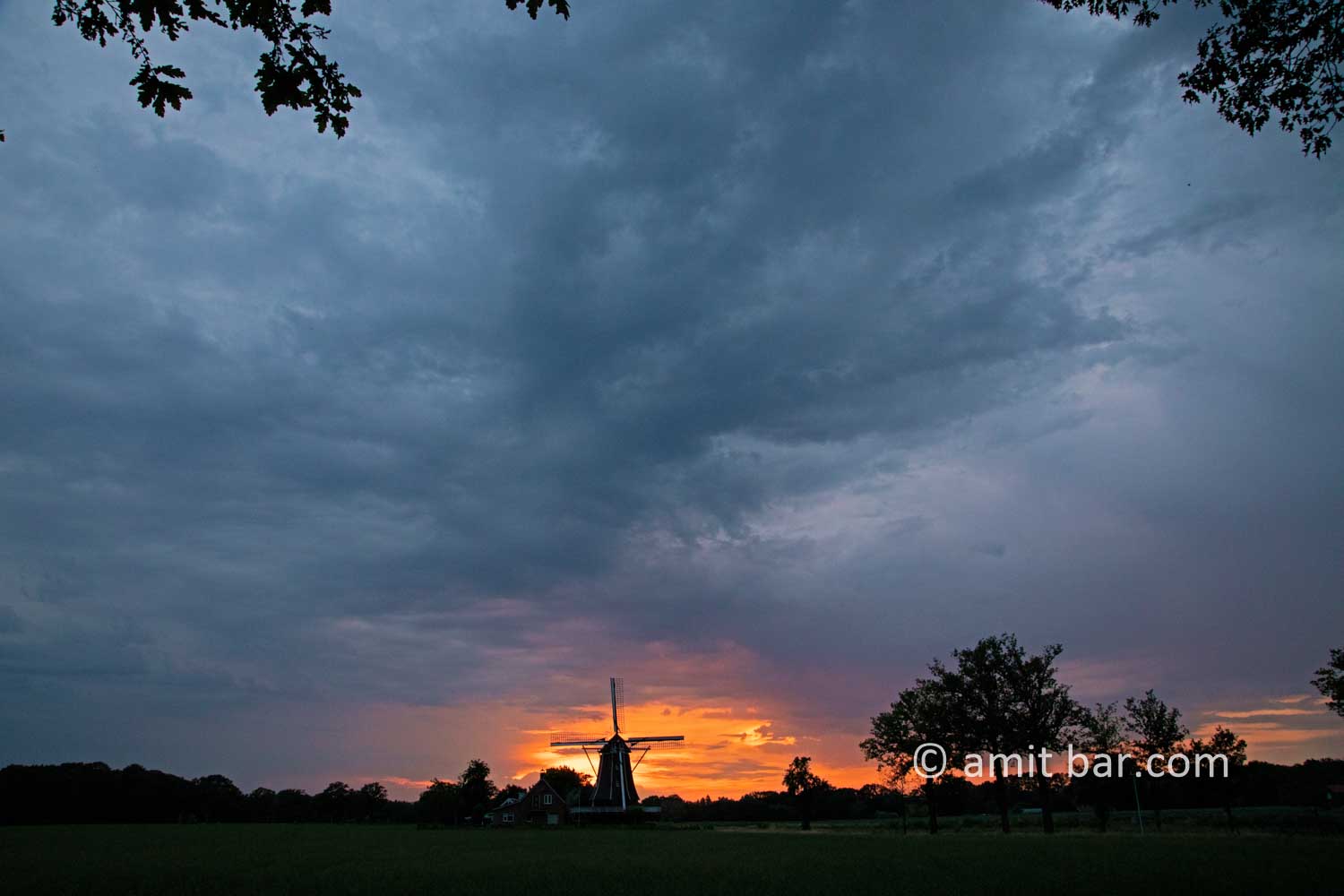 Photo 1-2: Rain clouds, sunset and windmill in Doetinchem, The Netherlands