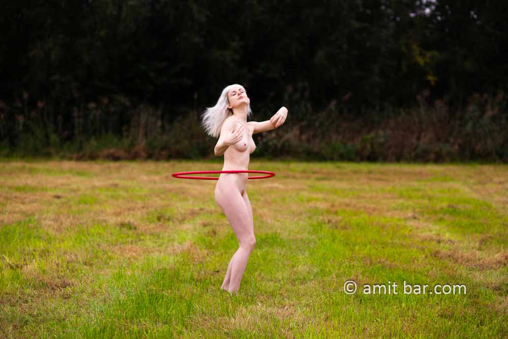 Photos I-II & video: Model Rebecca is exercising hula hooping in nature