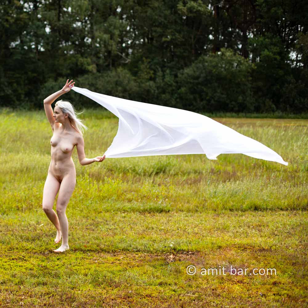 Photos I-VI & video: Model Rebecca is dancing in nature with-and without a rag