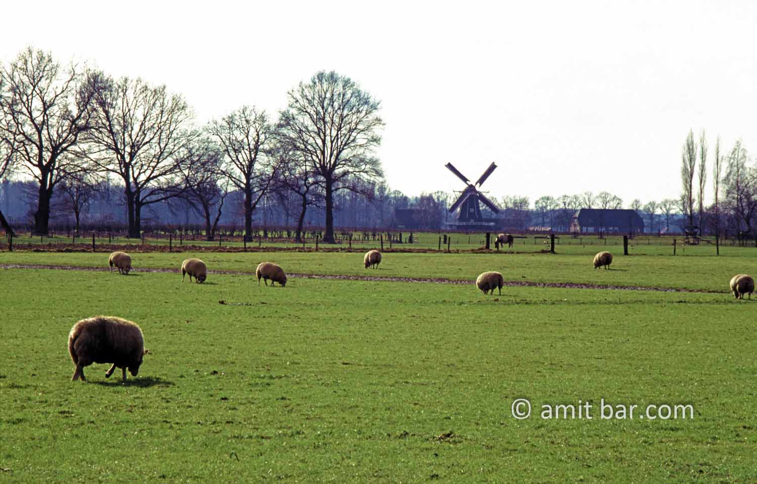 Sheeps are grazing while turning windmilll is seen at Doetinchem, The Netherlands