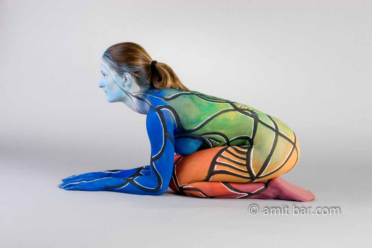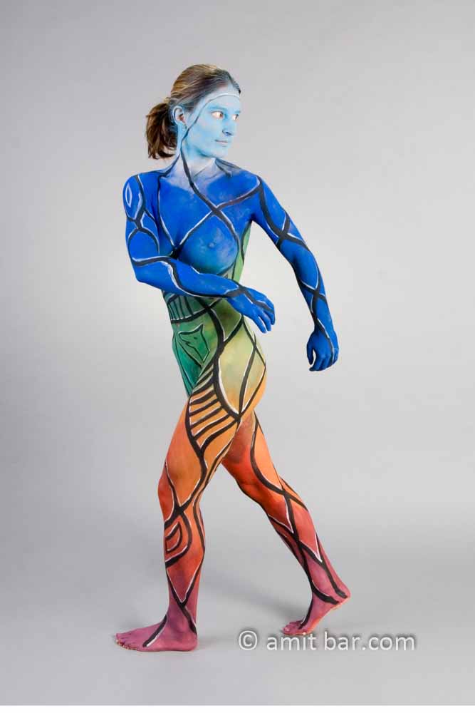 Photo 1-3: Body-painted model in various colours