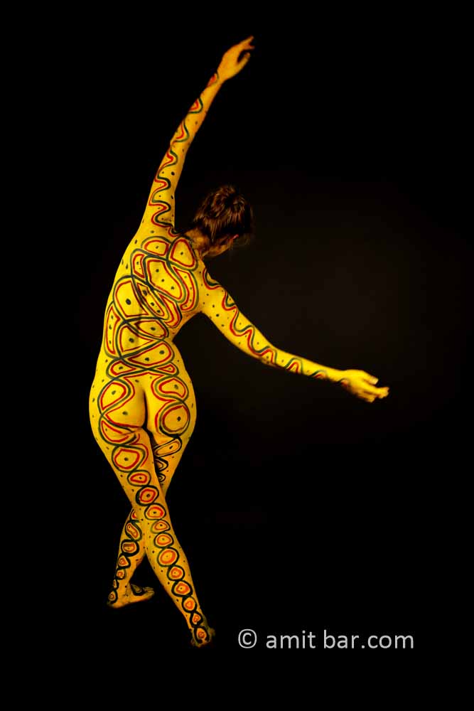 Video: Stripes are the most important part of this body painting, inspired by the music of Vivaldi. The Dots fills the empty spaces among them.