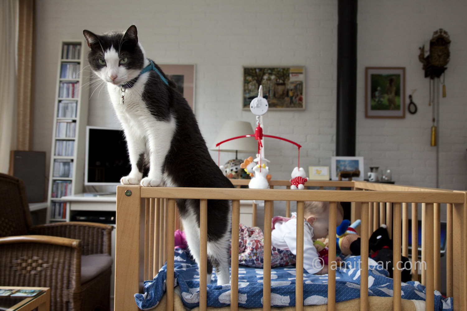 babysitter: baby is been protected by the cat