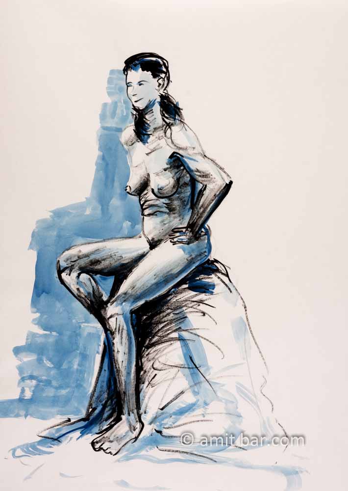 Blue nude: Nude model in black ink and blue water color
