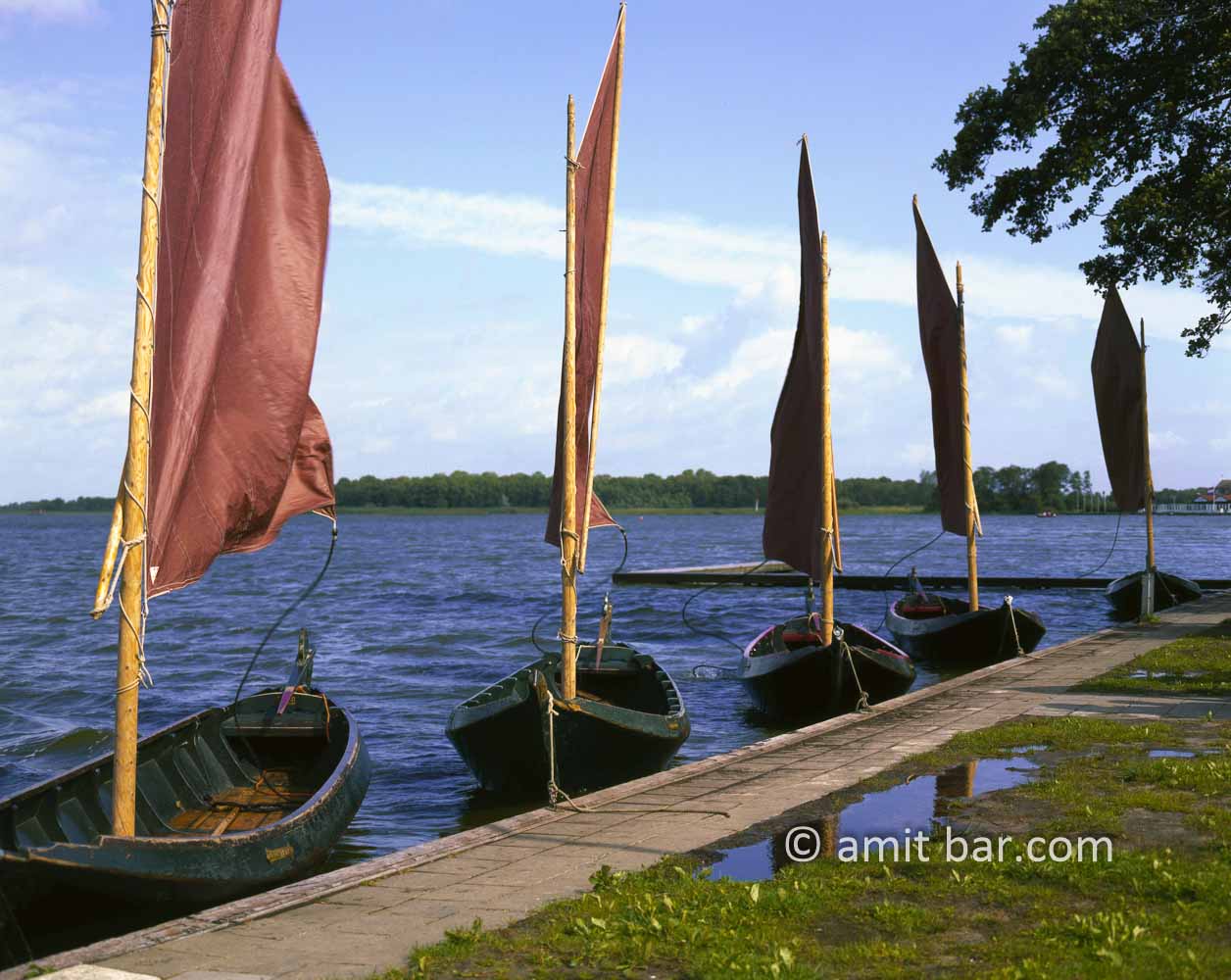 Boats and strong wind Boats and strong wind: skûtsjes (Frisian sailing boats) on lake by Giethorn, The Netherlands