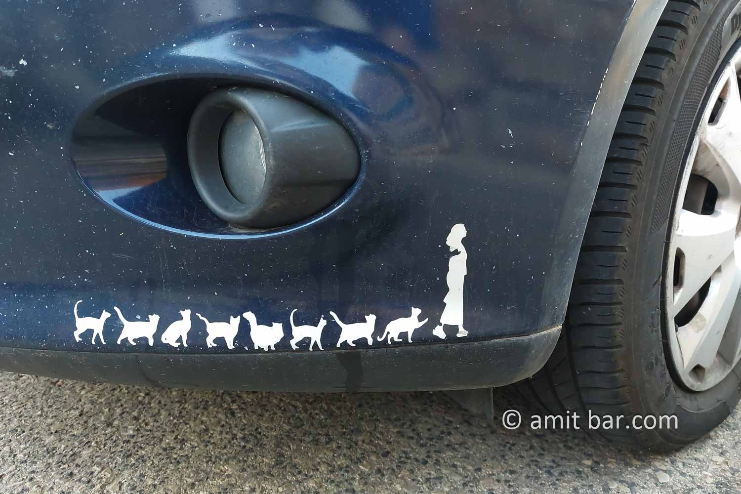 Cats’ fan: Decoration of a car’s bumper in Ramat-Yishai, Israel