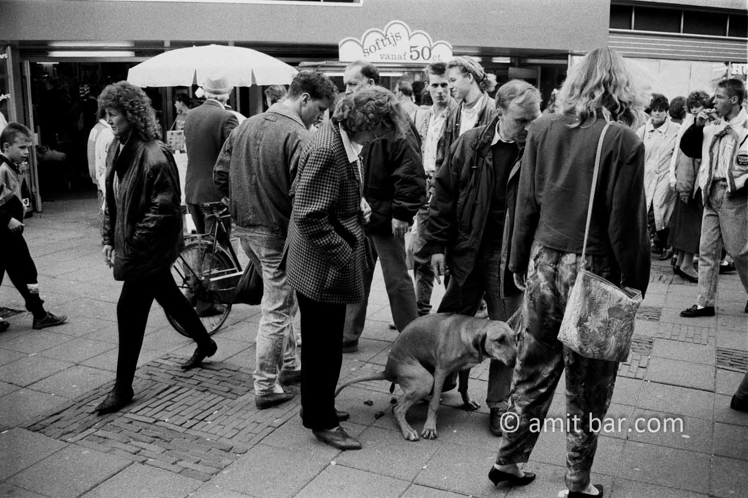 Soft Ice: A dog defecate on street beside his embbarassed owners