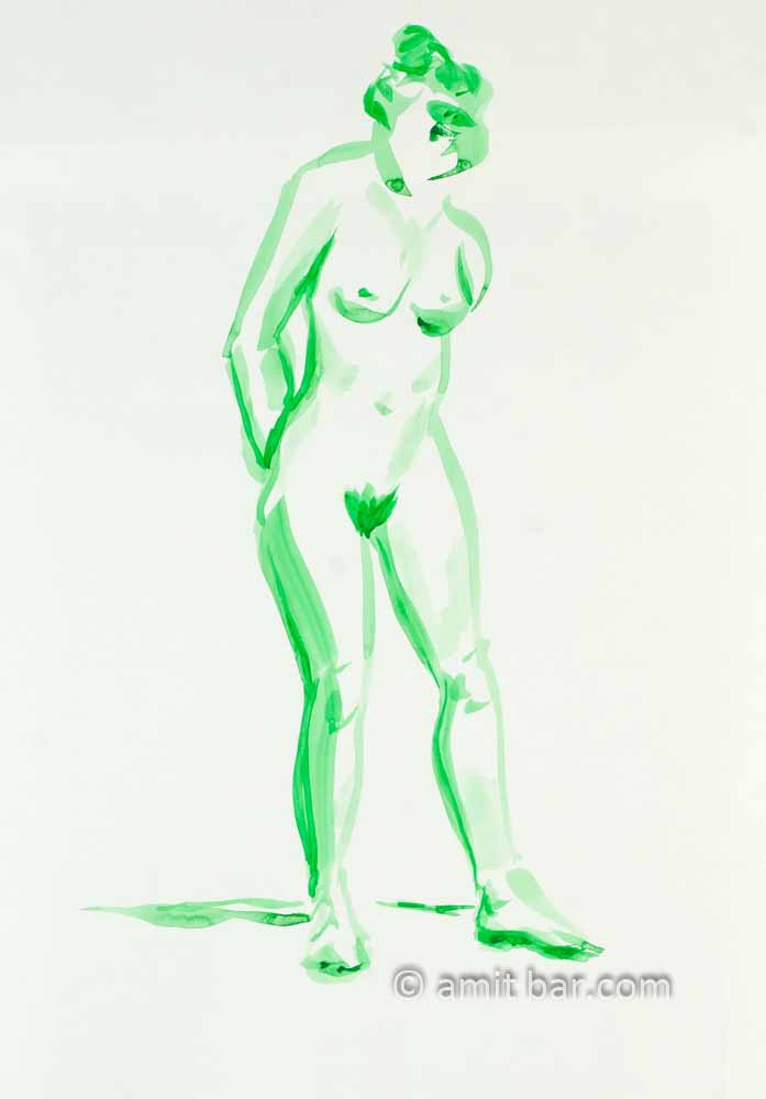 Standing nude in green. Aquarel